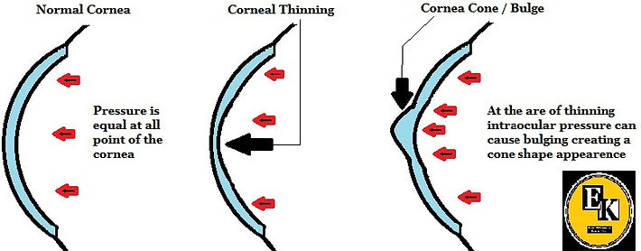 Keratoconus is a cornea disease that causes corneal thinning. Gradually, the internal pressure of the eye bulges the cornea outwards where the cornea is thinnest, forming a cone shape. A cone-shaped cornea causes light to scatter, resulting in blurred vision. In some cases, patients experience sensitivity to light and glare. Keratoconus usually affects both eyes and typically begins during puberty or in late teens. The condition is generally progressive; the size of the cone increases slowly over a period of 10 to 15 years.